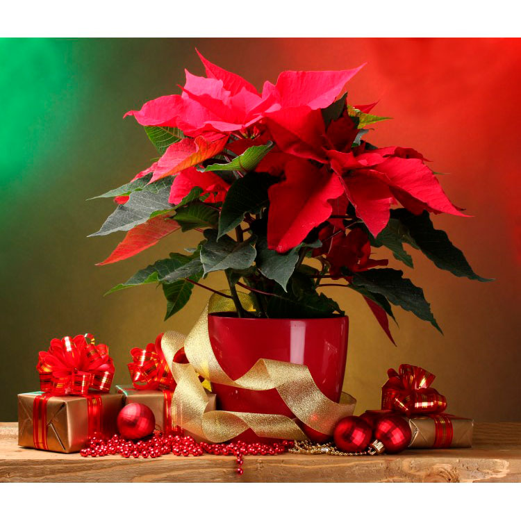 Planta típica de navidad con un macetero rojo, perfecto regalo navideño.