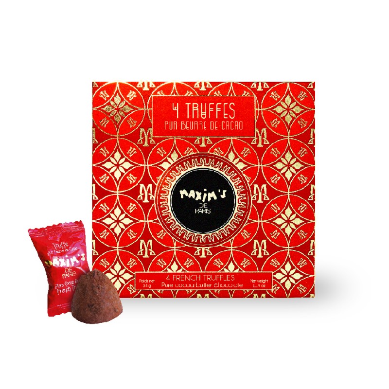 Délicatement saupoudrées de poudre de cacao, les truffes pur beurre de cacao Maxim’s vous offrent le plaisir fondant et onctueux du chocolat dans son expression la plus gourmande.